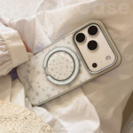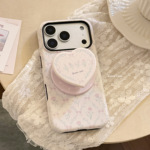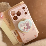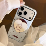 奶油波点苹果17promax手机壳iphone16爱心镜面磁吸支架15适用13韩