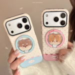闪粉磁吸支架适用苹果17promax手机壳iphone16花朵玩偶13软15少女