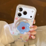 ins风蓝小花苹果17pm 手机壳iphone17适用16闪粉磁吸支架15清新13